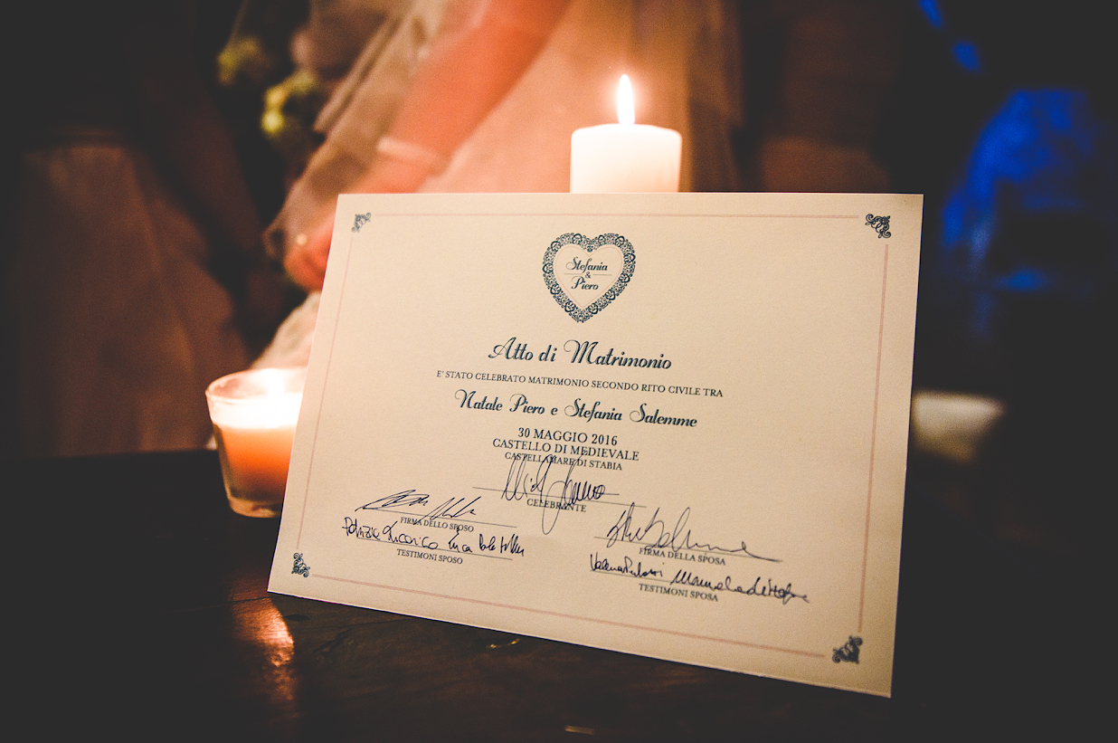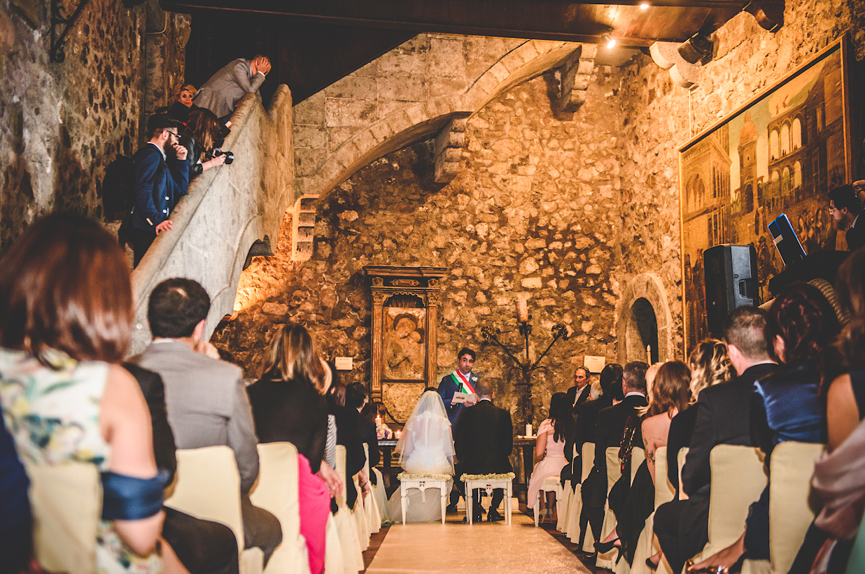 Un matrimonio da Favola: dalla Cerimonia svoltasi presso il Salone del Castello e tenuta dal Fratello della nostra Sposa, sino al ricevimento in una delle tante Terrazze Panoramiche del Castello..