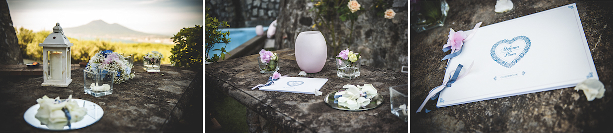 A fare da sfondo, il nostro Gigante Buono; la veduta del Vesuvio ha accompagnato e cullato gli invitati giunti da tutta Italia per poter festeggiare Stefania e Piero fino a tarda serata..